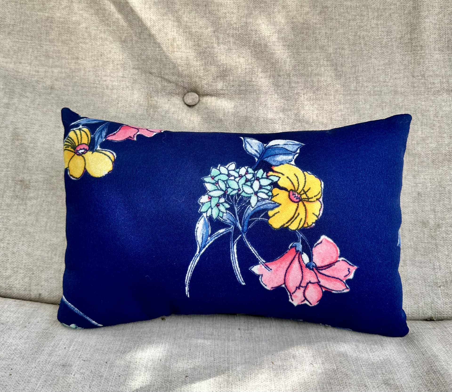 Pillow made with upcycled fabric.